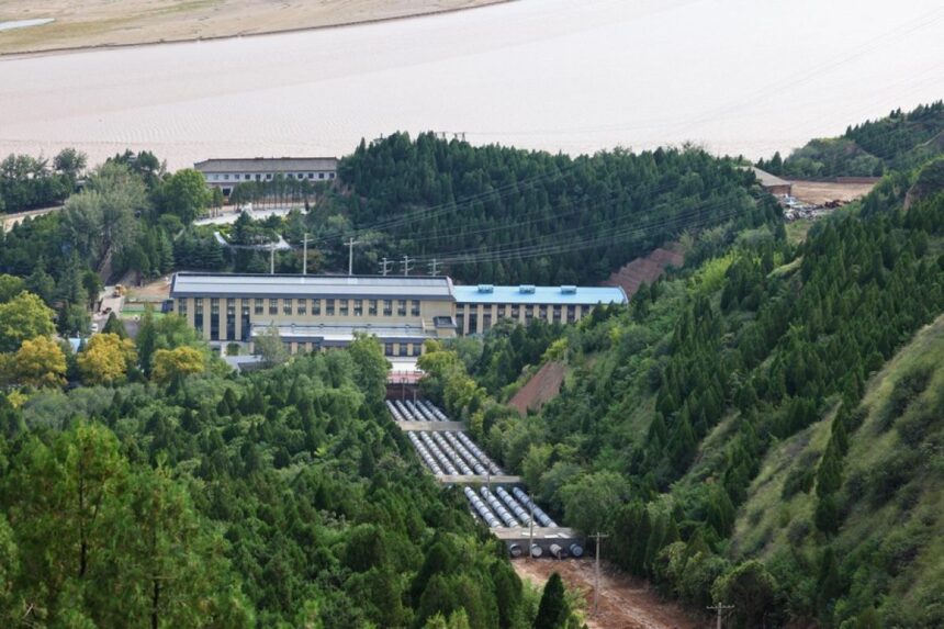 Foto dari udara yang diabadikan pada 21 September 2023 ini menunjukkan proyek pemompaan air (water lifting) Dayudu di wilayah Ruicheng, Kota Yuncheng, Provinsi Shanxi, China utara. (Xinhua/Xing Guangli)