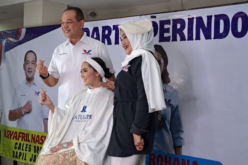 Bacaleg Partai Perindo untuk DPR Dapil Jateng I, Syafril Nasution bersama Bacaleg Partai Perindo untuk DPRD Provinsi dapil I, Siti Rohana, dan Bacaleg Partai Perindo untuk DPRD Kota Semarang, dapil II, Erlinarti menghadiri beauty class. Foto/MPI/Eka Setia