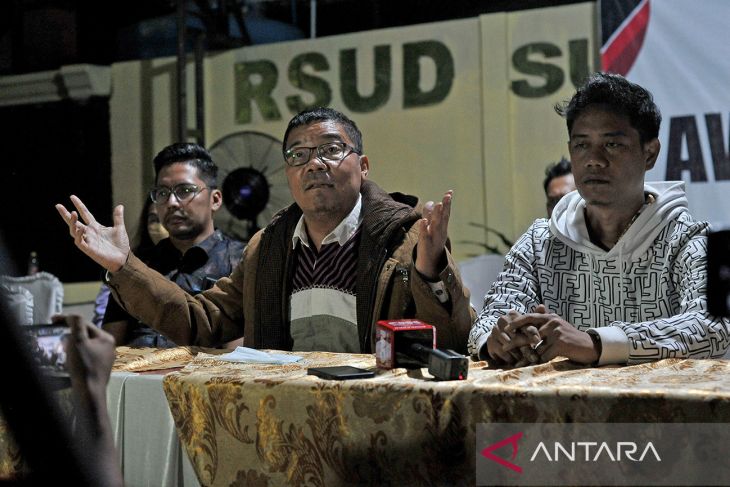Kuasa hukum keluarga almarhum Brigjen Nofriansyah Yosua Hutabarat atau Brigadir J, Johnson Panjaitan (tengah) memberikan keterangan pers jelang autopsi di RS Sungai Bahar, Muarojambi, Jambi, Rabu (27/7/2022) dini hari. Pengacara mengatakan, selain pemeriksaan bekas luka luar, keluarga juga mengajukan permintaan khusus untuk memeriksa kemungkinan bekas luka pada organ dalam, terutama tenggorokan, sedangkan otopsi ulang jenazah Brigjen J dijadwalkan Rabu (27/ 7/2022) pagi. . Partaipandai.id FOTO/Wahdi Septiawan/rwa.