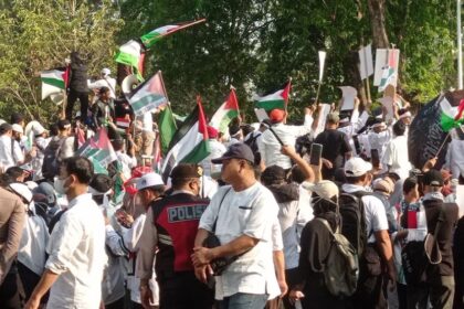 Massa Aksi Bela Palestina Tumpah Ruah di Depan Kedubes AS