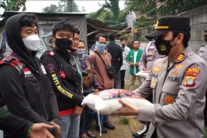 Polisi Pagedangan Bagikan Sembako Untuk Ojol dan Sopir Angkot
