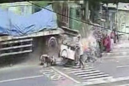Rekaman CCTV menunjukkan truk menabrak halte di Bekasi, siswa sekolah dasar berhamburan